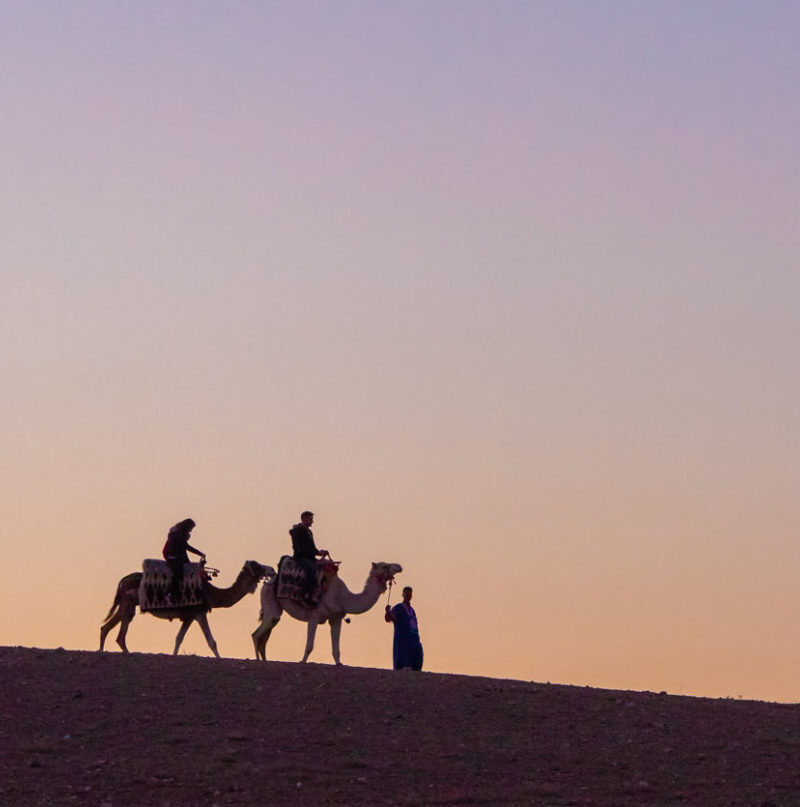 Marrakech – Coucher de soleil dans le désert d’Agafay, balade en chameau & dîner-spectacle