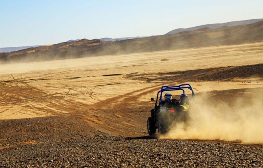 Encadré par des guides professionnels, vous prendrez les commandes d’un buggy biplace puissant et maniable, idéal pour explorer en toute sécurité. En chemin, une pause conviviale vous attend dans un camp berbère, avec un thé à la menthe offert et un moment d’échange avec les habitants.
