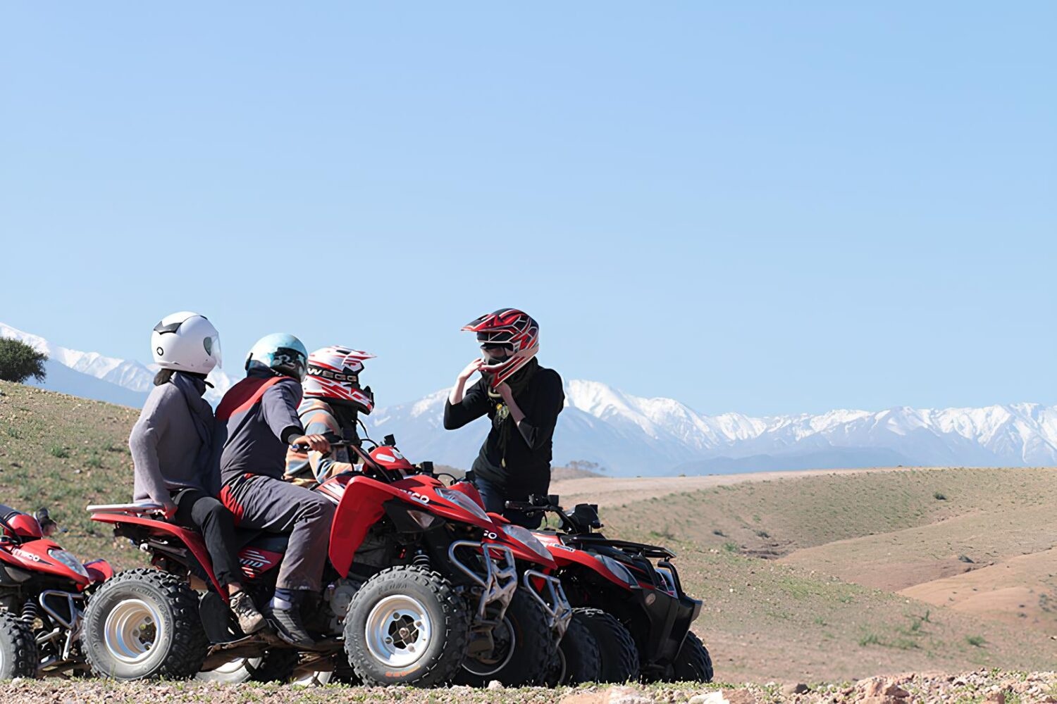 Après un rapide briefing sécurité, vous partez pour 1h de quad dans les paysages lunaires d’Agafay. Entre pistes rocailleuses et panoramas, sensations garanties.
