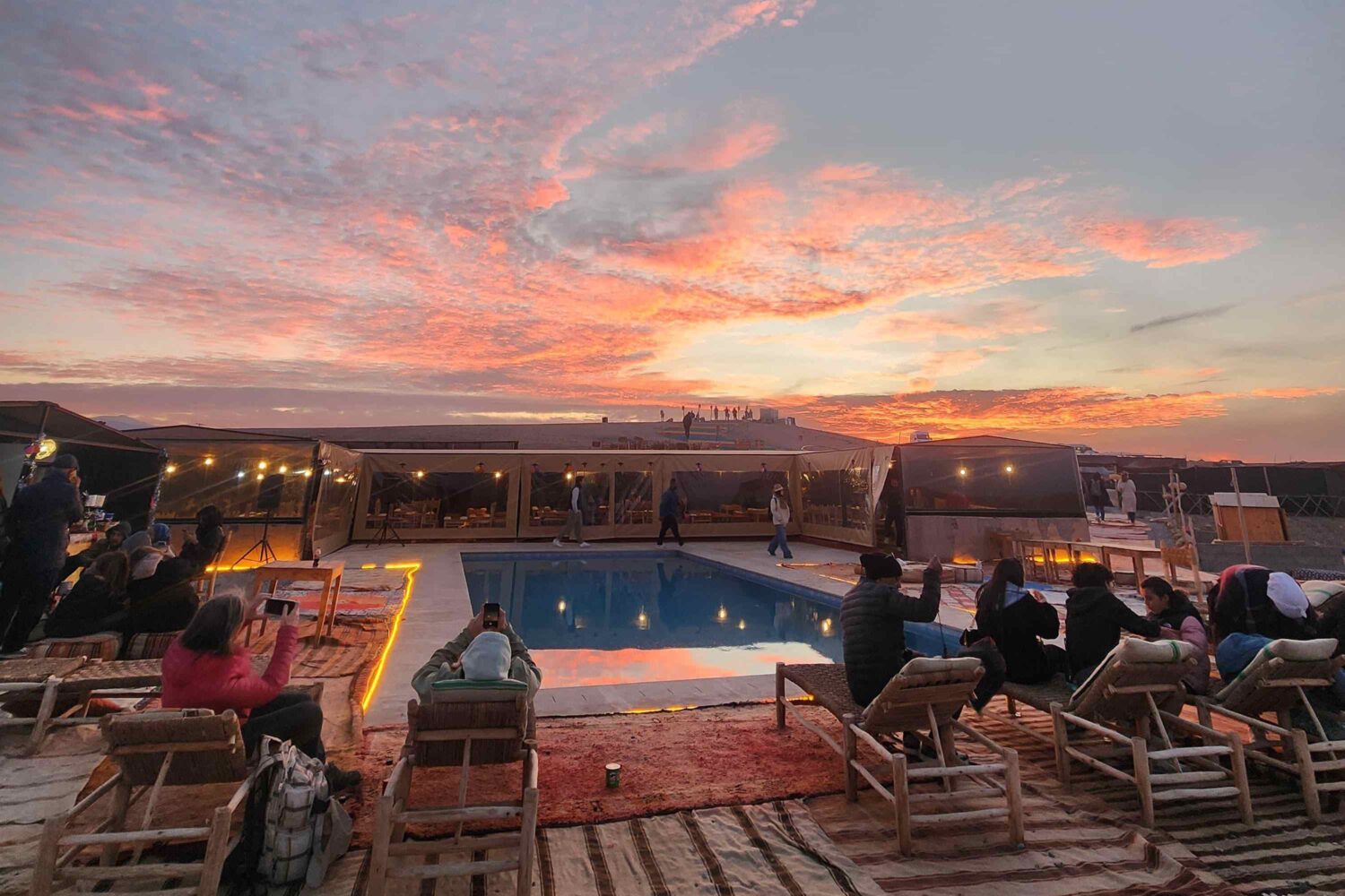 À la nuit tombée, place à un dîner marocain dans une tente berbère : tajine, couscous, salades et desserts. Le tout accompagné d’un spectacle live : musiciens, danse orientale, feu de camp… ambiance envoûtante garantie.